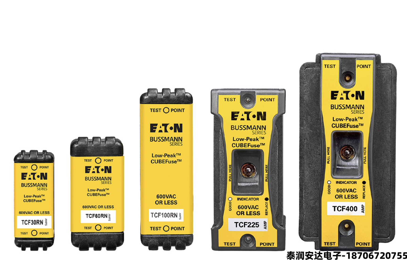 TCF 系列延时型立方体熔断器采用Low-Peak™ 双元件延时技术,额定电压 600V AC / 300V DC,极限短路分断能力高达 300kA@600V AC,可在高短路电流系统中提供安全、快速、限流型保护。产品具备500% 过载 10 秒延时特性,有效躲过负载启动浪涌,实现精准保护与选择性配合。全系列采用手指安全绝缘结构,支持热插拔更换,适用于数据中心 PDU、列头柜、UPS、精密制冷、HVDC 直流配电及储能系统等关键电气回路,提供从 6A 至 400A 全范围过载与短路保护。
